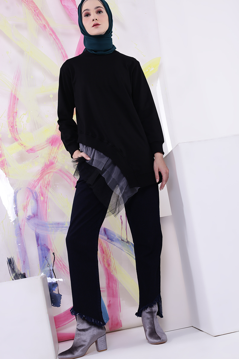 Oversized sweater busana yang memiliki potongan longgar ini, wajib dimiliki oleh hijabers karena dapat menutup aurat dengan sempurna. Untuk tampil modest dan trendi, kamu dapat mengombinasikannya dengan maxi skirt dan slip-on sneakers.
