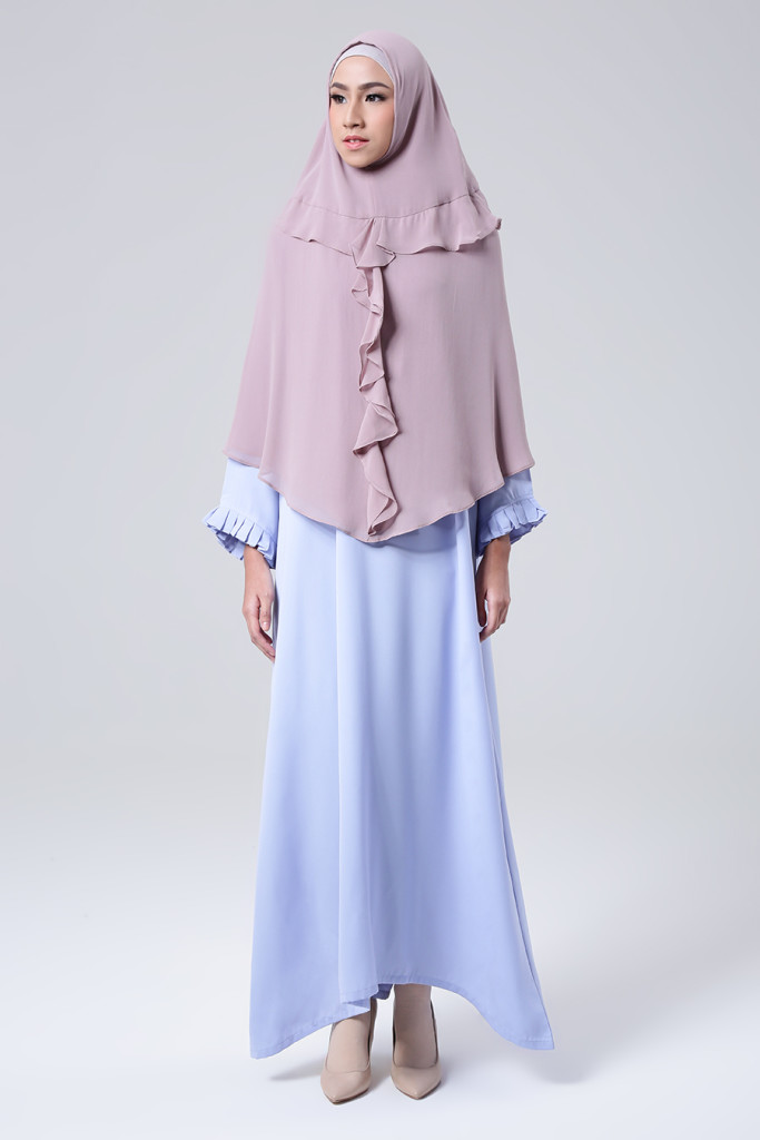 Bagi kamu yang ingin mengenakan nuansa warna pastle ataupun lembut pada saat beribadah haji dan umroh, maka kamu bisa mencoba dress yang satu ini. Dress yang sudah dilengkapi dengan khimar ini memudahkanmu berpenampilan saat ibadah.