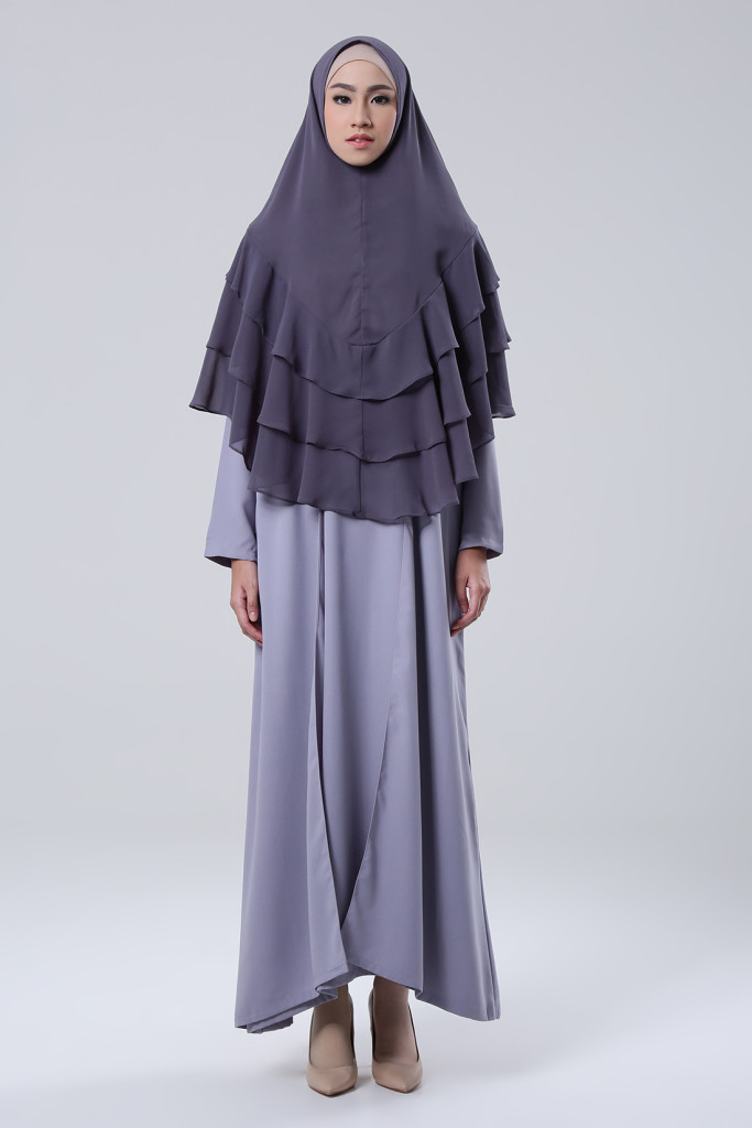 Dalam nuansa warna abu-abu gamis haji dan umroh ini sudah dilengkap dengan jilbab syar’i yang mudah dikenakan sehingga memudahkan dalam berpenampilan dan menutup aurat.