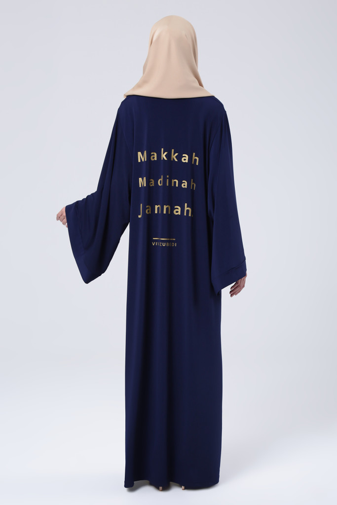 “Makkah Madinah Jannah”, sebuah tulisan dalam abaya tersebut seolah sebuah doa yang akan mengantarkanmu saat sedang beribadah haji dan umroh. Dengan bahan yang lembut dan berkualitas, abaya ini sangatlah cocok kamu kenakan saat berada di tanah suci.