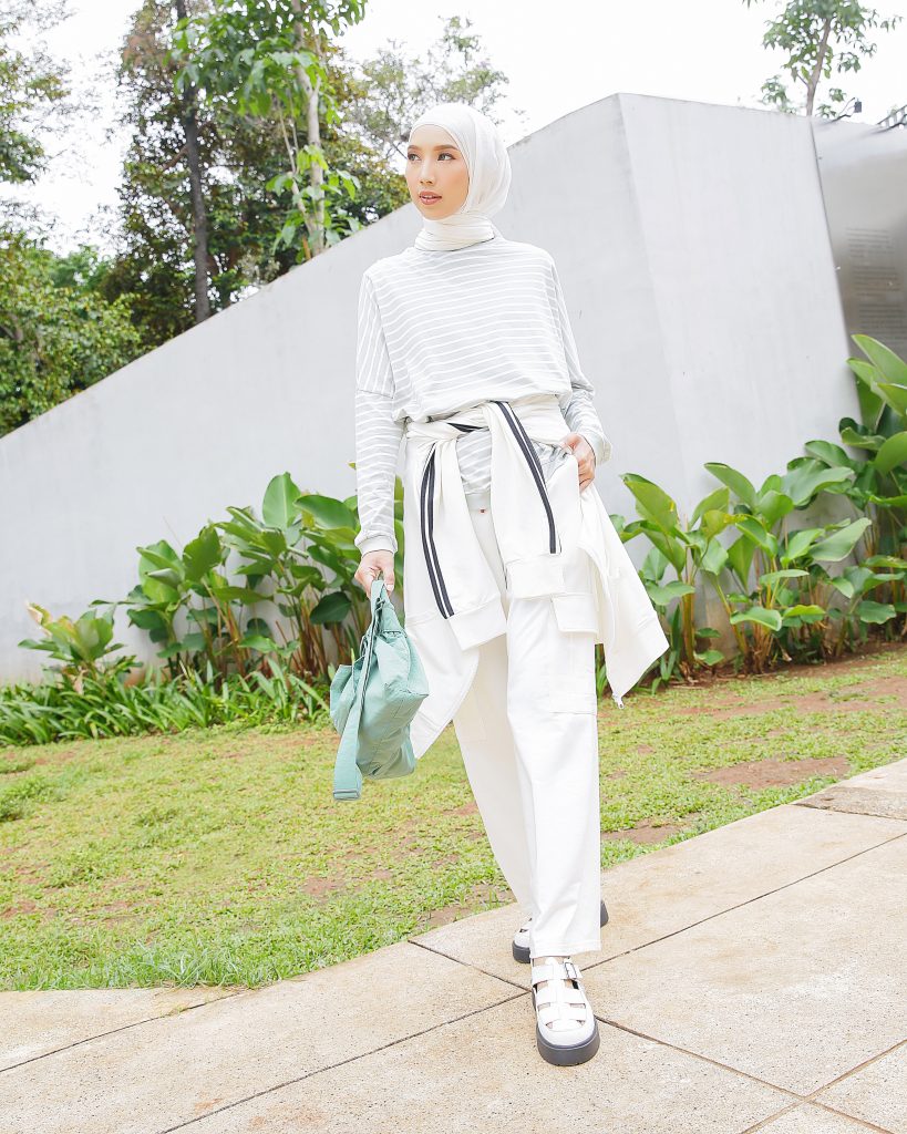 Kali ini, kamu juga bisa memberikan sentuhan sporty di dalam look-nya dengan menambahkan sneakers ataupun sandal platform berwarna netral agar tampilan kamu bisa lebih flawless, Dear.