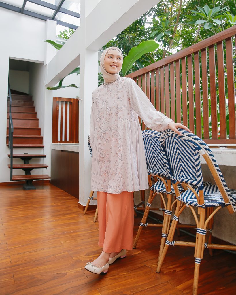 Untuk bagian atasannya, kamu bisa memakai tunik dengan motif flower print yang gak akan gagal untuk membuat penampilanmu makin cantik dan menarik, lho. Anyway, tunik ini juga hadir dengan resleting di bagian dada, sehingga sangat cocok untuk kamu yang sedang menyusui, nih.