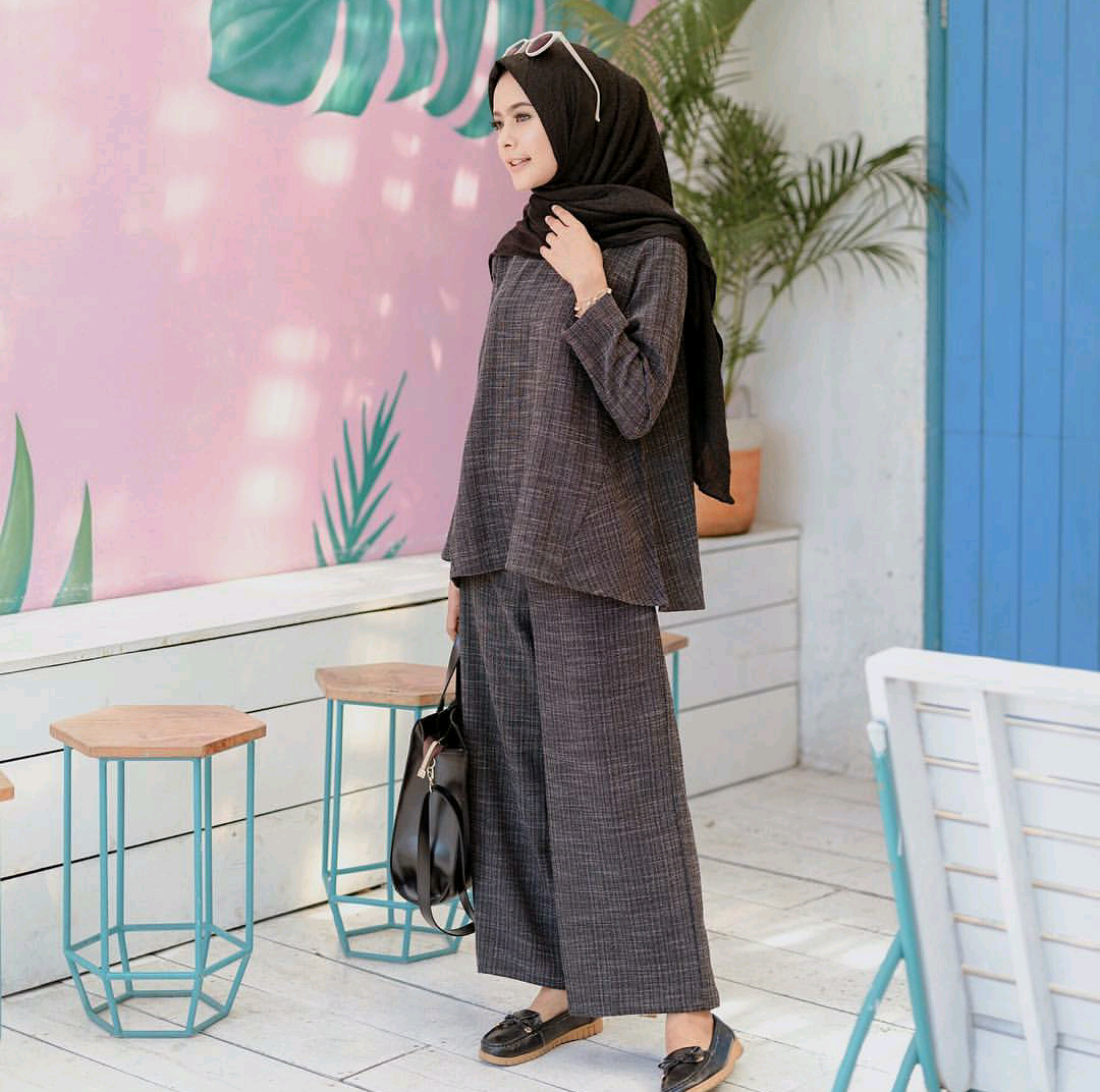 Ingin tetap tampil casual dengan warna-warna monokrom? Satu set blus dan palazzo ini bisa kamu kenakan untuk tampilan ke kantor. Lengkapi dengan loafer shoes, tote bag, dan pashmina berwarna senada.
