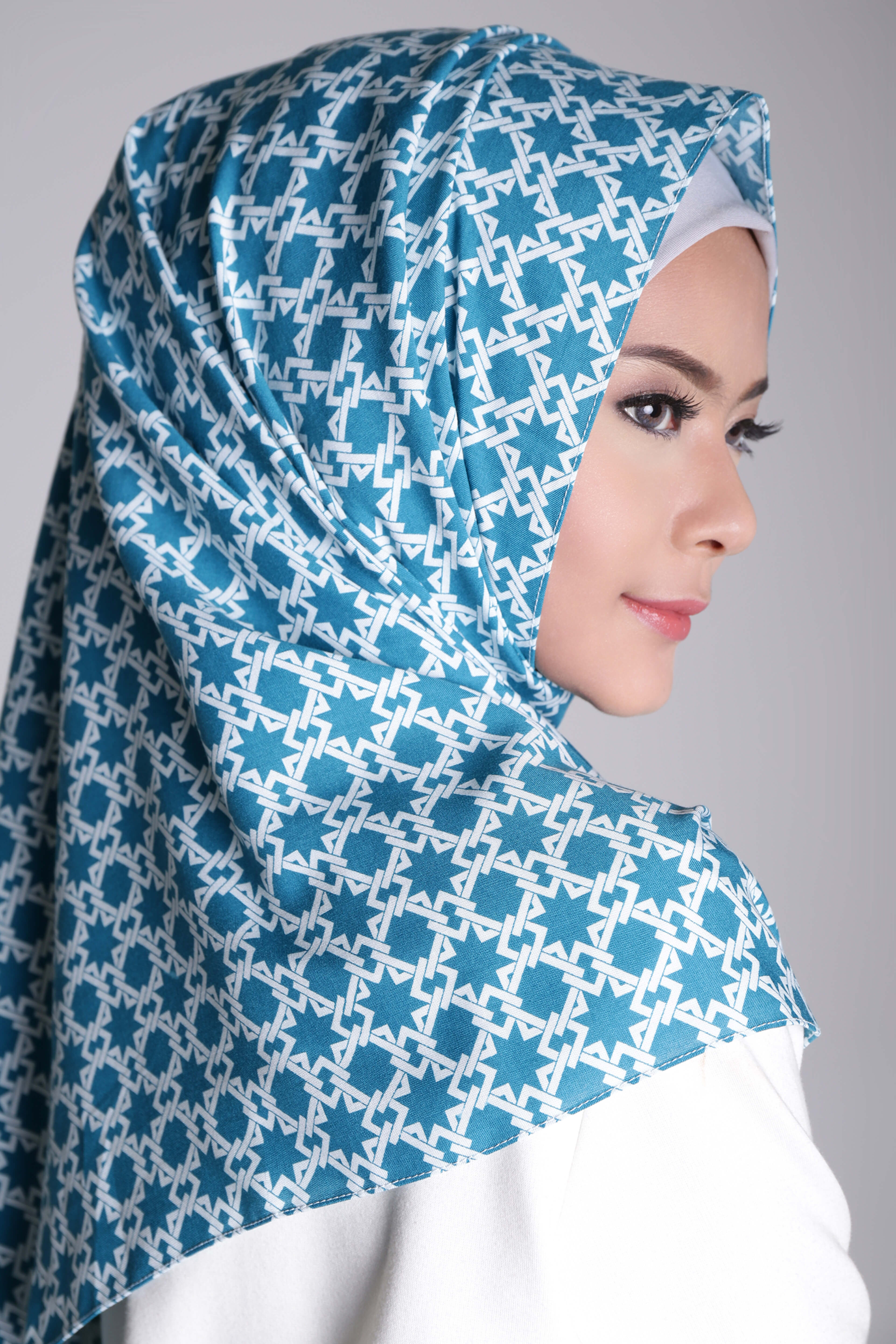 Pashmina berwarna dasar toska ini memiliki motif geometris berulang dengan ukuran kecil berwarna putih. Pashmina motif dengan material dasar katun ini sangat cocok untuk digunakan para wanita yang memiliki wajah bulat. Selain nyaman, efek motif geometis tidak akan membuat kesan wajahmu semakin bulat. Dapatkan pashmina motif ini secara online di sini.