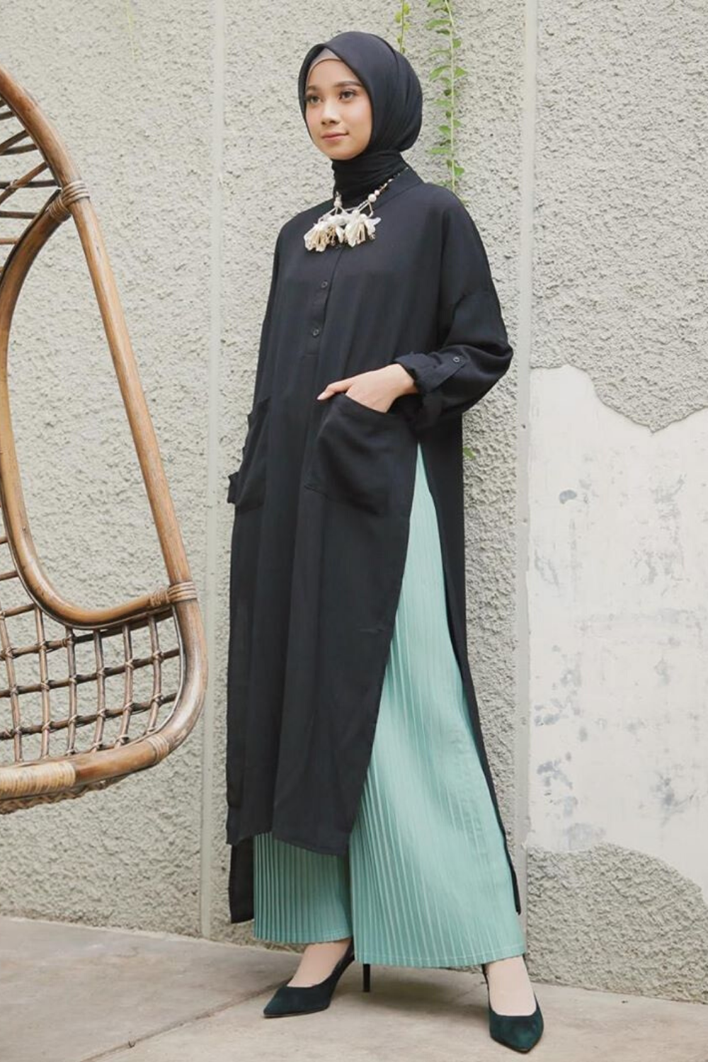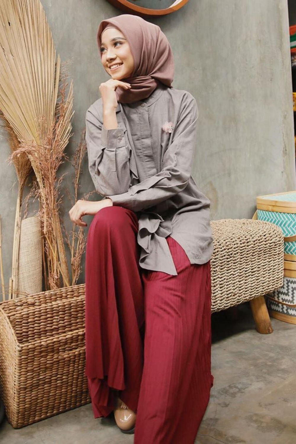 Butuh sesuatu yang simpel namun tetap terlihat fresh? Contek kombinasi gaya yang satu ini. Tinggal padukan kemeja tunik polos dengan hijab senada dan celana kulot plisket yang tren.