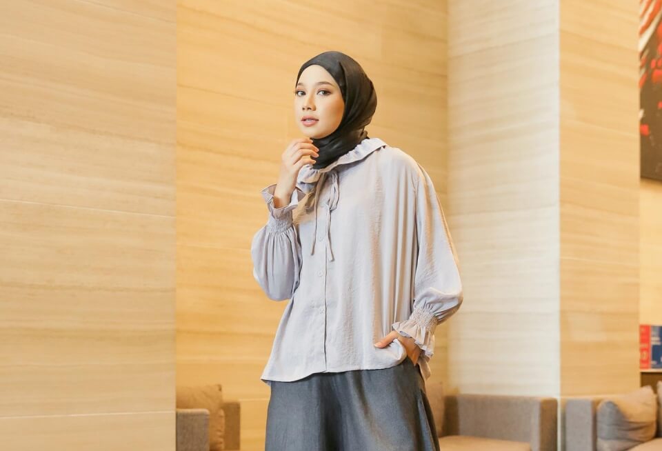 Blouse longgar ditambah celana jeans, terlihat nyaman untuk jadi outfit silaturahmi ke rumah sanak saudara di kampung halaman.