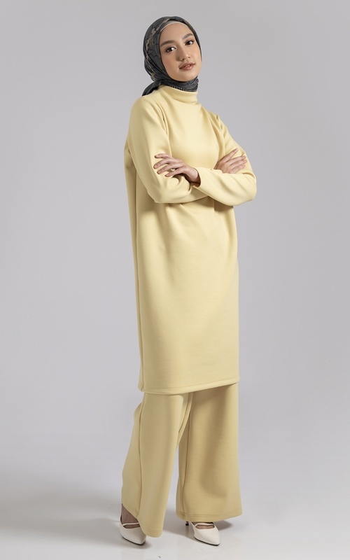 Itu karena warna dasar solid yang disuguhkan adalah pastel yellow yang lembut dan menenangkan untuk dilihat. Belum lagi kesan satin yang tipis dan tidak berlebihan, akan membuat kamu tampak cantik apa adanya dengan modis!