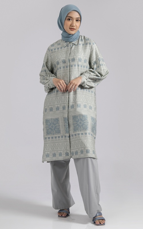 Tunik ini semakin cantik dengan aksen puff tipis di bagian lengannya yang dipadu oleh benik. Kamu juga bisa memakainya tanpa ribet karena tunik elegan ini memiliki benik di bagian tengah, dari dada sampai ke bawah sehingga mudah untuk memakai dan melepasnya.