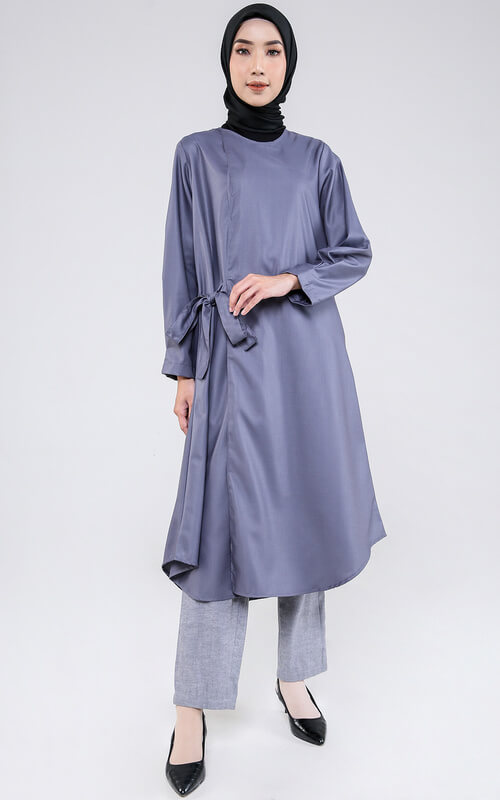 Ingin yang lebih simpel lagi? Maka kamu bisa pilih model tunik panjang polos pada nomor dua ini. Masih dalam nuansa abu-abu tapi kali ini hadir dengan semburat warna biru yang membuatnya terlihat fresh saat dikenakan.