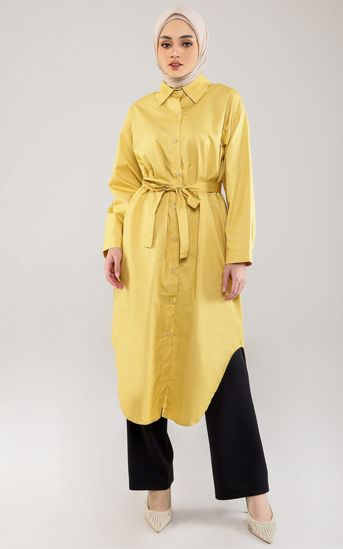 Bukan hanya dress tapi ada juga nih tunik warna kuning dengan aksen tali di bagian pinggang yang bisa kamu buat menjadi simpul pita yang cantik. Tunik ini cocok untuk semua bentuk tubuh mulai dari slim sampai big lho Dear.