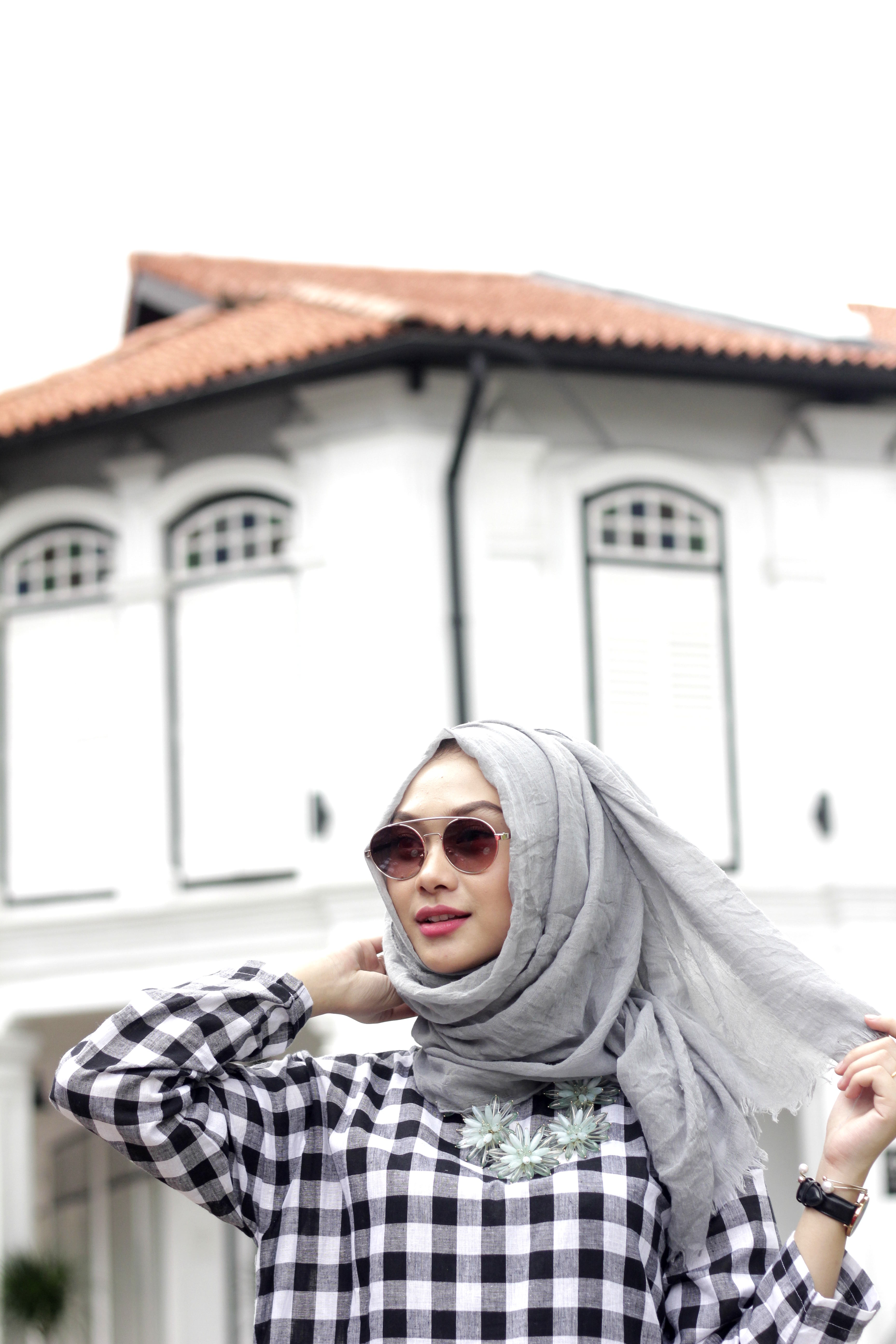 Jika tak sempat memakai rangkaian aksesoris dan ingin terlihat lebih simple, kaca mata hitam juga bisa berfungsi sebagai aksesoris. Sematkan kaca mata hitam di atas kepala, selipkan di antara lipatan pashmina yang telah disematkan jarum pentul. Penampilanmu akan menjadi lebih stunning dalam sekejap saja.