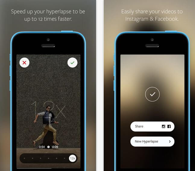Berbeda dengan aplikasi sebelumnya, aplikasi ini dapat membuat video time-lapse degan kecepatan yang tinggi. Time-lapse merupakan suatu teknik menangkap adegan, kemudian diputar kembali hingga menghasilkan efek yang bergerak cepat yang mencapai 12 kali. Image stabilization dalam aplikasi ini pun membuat video yang dihasilkan menjadi lebih stabil. Hyperlapse tersedia untuk IOS dan Android.