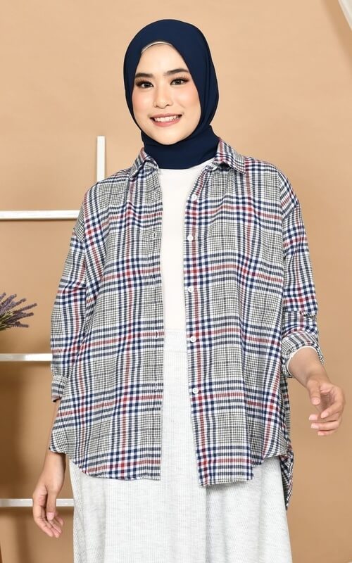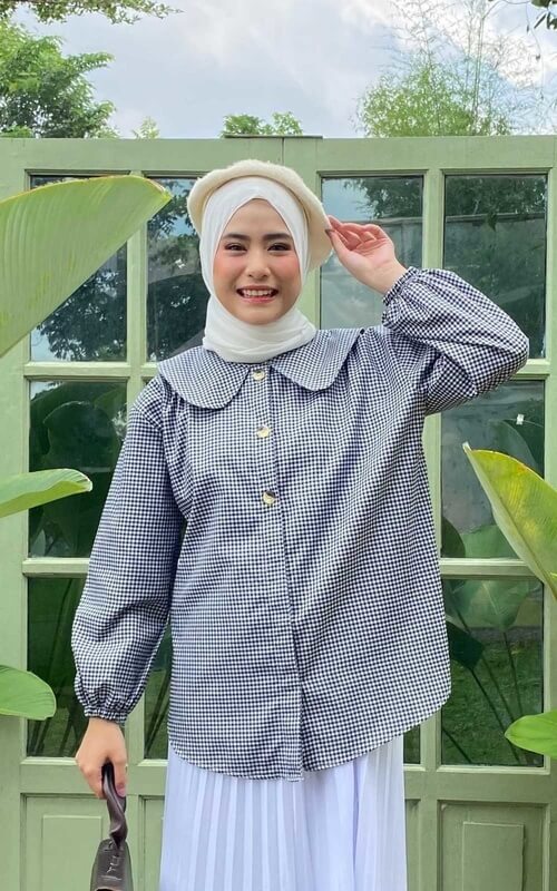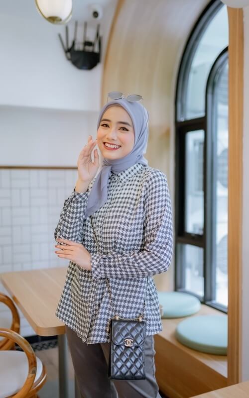 8 Model Atasan Kotak-Kotak Wanita Hijab