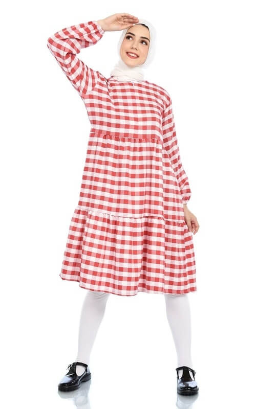 Ada rencana untuk datang ke acara 17-an? Maka kamu bisa tampil berkonsep sesuai tema acara dengan tunik kotak-kotak warna merah putih, Dear. Detail ujung lengannya menggunakan kerut sehingga tunik ini praktis untuk wudhu atau pun cuci tangan.