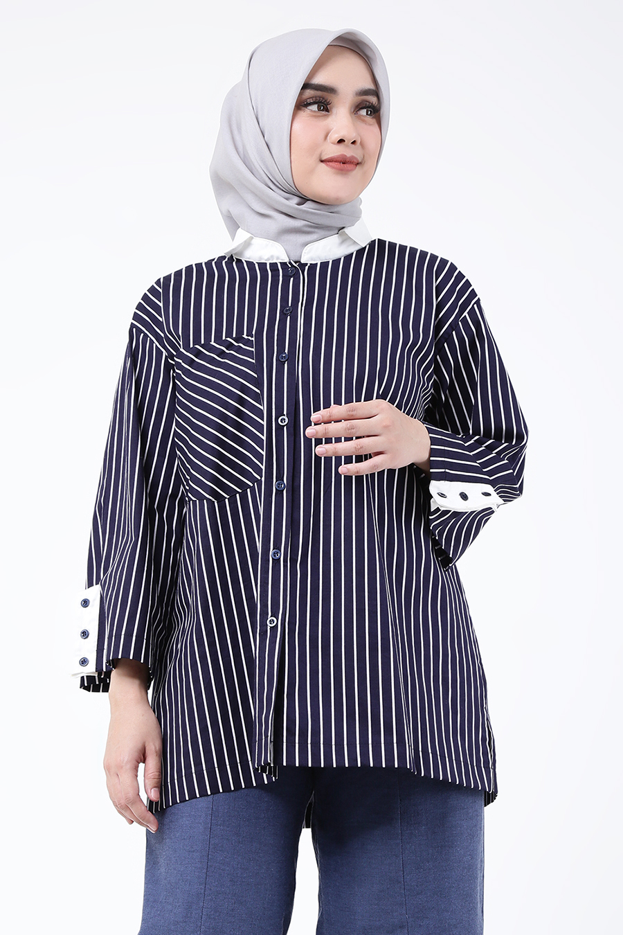 Atasan yang satu ini sangat pas untuk tubuh berisi. Memiliki lingkar dada yang besar, blus ini siap hadirkan kenyamanan maksimal. Selain itu, sentuhan motif garisnya siap membuat kamu terlihat lebih ramping.