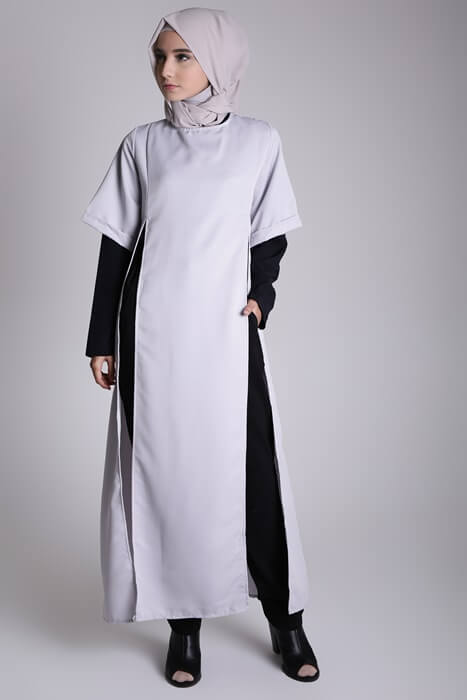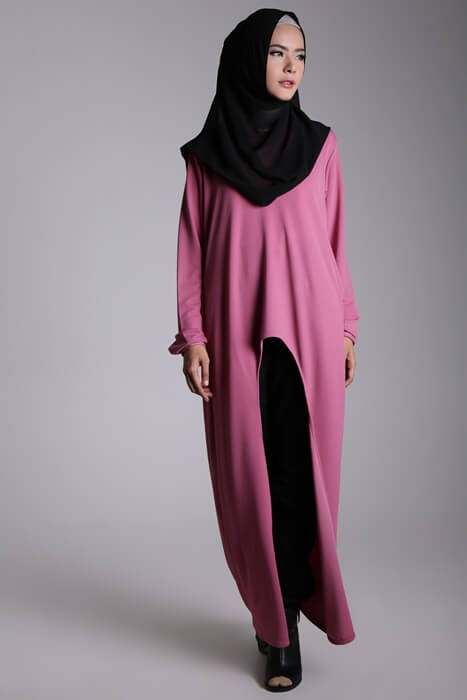 Atasan busana muslim dengan potongan yang panjang memang sedang sangat diminati saat ini. Bagaimana memilih busana dengan model tersebut untuk wanita bertubuh pendek? Hal tersebut bukanlah masalah, pilihlah yang memiliki belahan tinggi atau panjang, agar kaki mu tetap terlihat. Hal tersebut akan memberikan efek kaki yang jenjang.