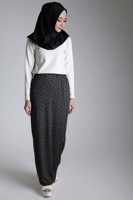 Rok dengan potongan ramping ini memang terlihat sangat stylish saat digunakan. Pencil skirt memiliki potongan yang ramping sehingga akan memberikan kesan kaki yang panjang pada penggunanya. Pencil skirt ini sangat pas bila dipadukan dengan busana muslim yang cocok untuk wanita pendek.