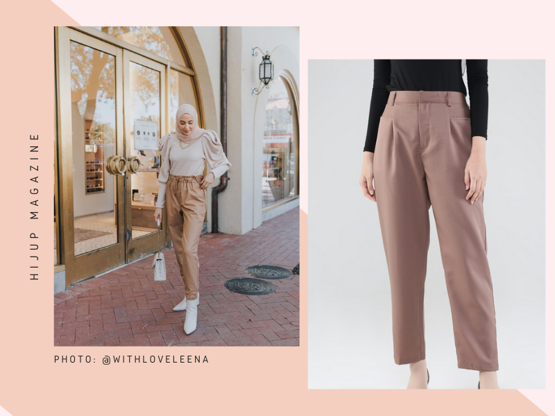 Bosan dengan celana berwarna hitam atau putih? Coba deh sesekali keluar dengan celana berwarna cokelat. Leena menggunakan blouse dan hijab berwarna beige yang matching banget dengan celana cokelatnya. Dilengkapi dengan sepatu putih dan tas berwarna senada yang membuat tampilannya terlihat cantik. Sedikit tips nih, untuk kamu yang ingin memilih celana cokelat untuk koleksimu. Celana high waisted akan membuat ilusi kaku kamu terlihat lebih jenjang, loh!