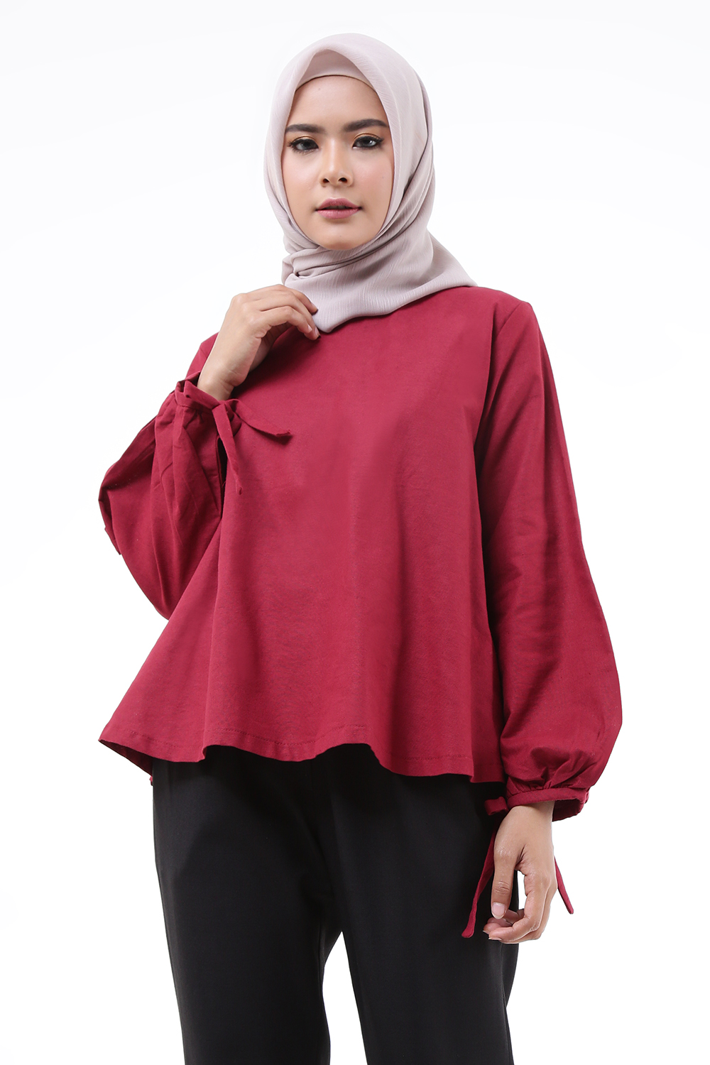 Tidak sulit untuk menciptakan kombinasi gaya yang terlihat on-point. Terlebih celana kulot panjang hitam sangat mudah dipadukan dengan apapun. Untuk menghadirkan kesan stylish nan kontras, salah satu padanan warna yang sempurna adalah blouse berwarna maroon seperti ini. Untuk melengkapi gaya yang satu ini kenakan mules sandal, sling bag, dan pashmina hitam.