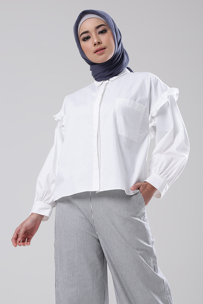 Padanan gaya ini juga efektif lho untuk menyamarkan bentuk pinggul atau paha yang besar. Selain itu, warna putih cenderung mampu menghadirkan kesan ringan dan nyaman.