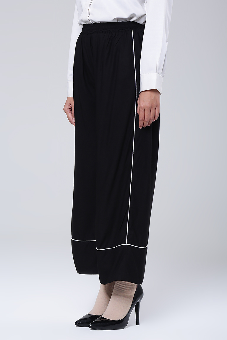 Siapa bilang celana palazzo tidak bisa menghasilakn tampilan yang sporty? Padukan dengan atasan oversize bergaris yang timeless. Tampilan dengan warna monokrom membuatmu terlihat stylish dan memberikan kesan chic.