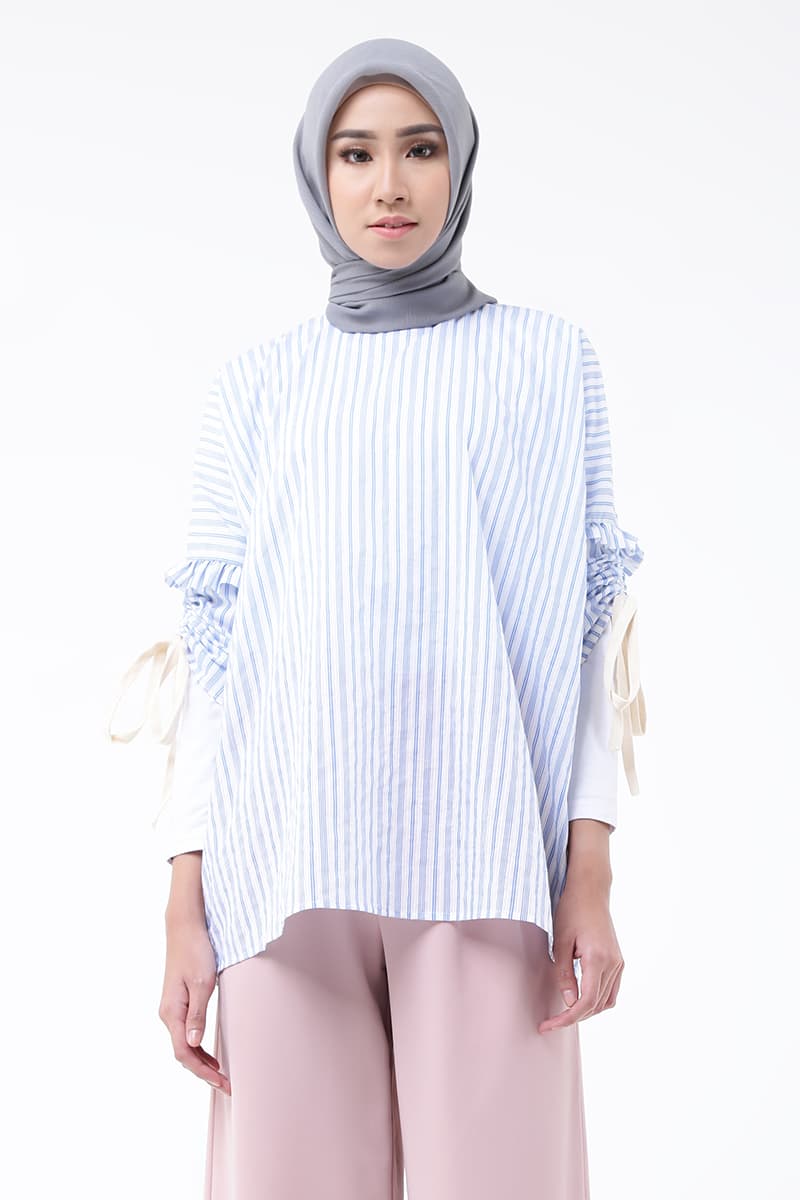 Ambil inspirasi warna biru dari air laut dan langit yang diterjemahkan dalam salah satu outfit-mu. Cobalah untuk tampil unik dengan menggunakan atasan yang memiliki aksen kerut dan lipatan pada lengan. Dengan mudah kamu bisa memadukannya dengan celana atau jilbab basic yang menyerap keringat.