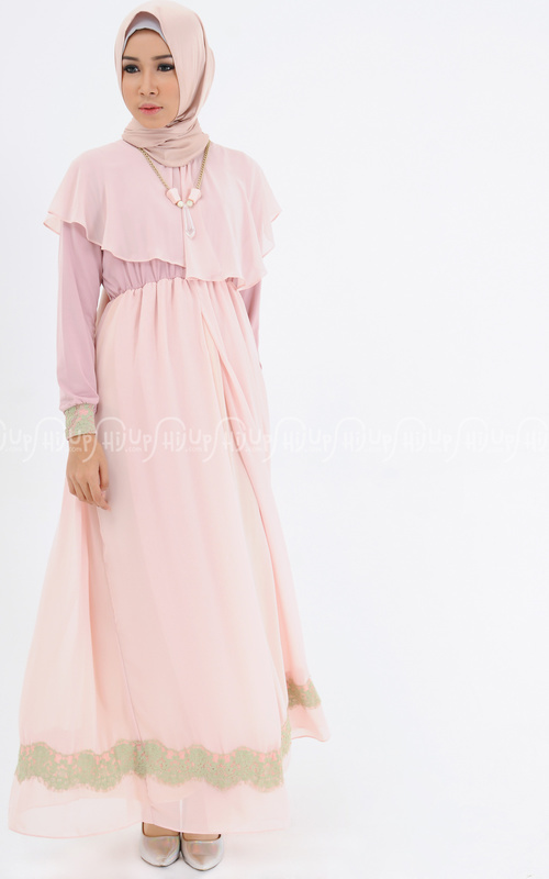 Mirip dengan evening dress jenis empire, namun dropped waist ini berpotongan pas di bagian pinggang. Padukan dengan kreasi jilbab apapun. Jika gaunnya berwarna polos, jangan lupa tambahkan aksesoris kalung. Evening dress for hijab ini cocok untuk muslimah yang sedang hamil karena kerutannya berada di atas perut.