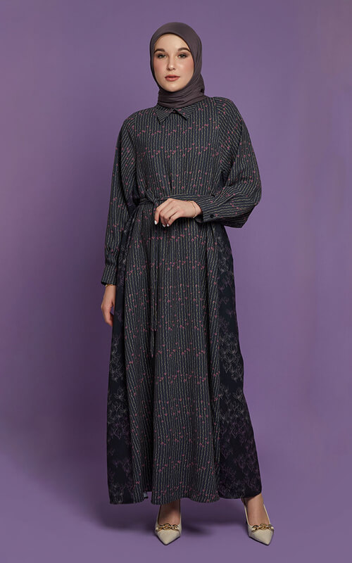 Gamis premium dengan motif elegan bertemakan garis dijamin tidak ketinggalan zaman. Jadi dengan memakai gamis motif garis bergelombang, kamu tidak perlu bingung pilih hijabnya. Bentuk gamis memang simpel dengan model potongan lurus ke bawah tanpa memakai akses kancing.