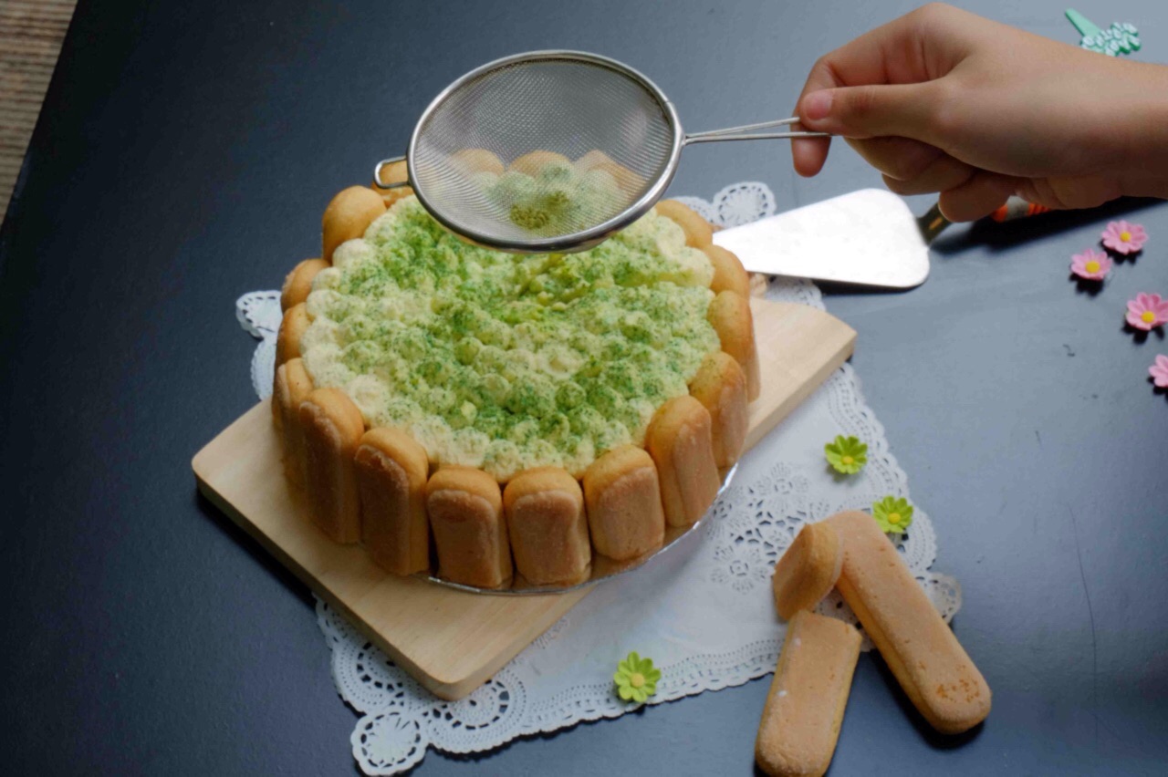 5, Larutkan green tea bubuk dengan air secukupnya, lalu gunakan larutan tersebut untuk melembutkan lady finger.