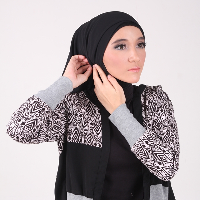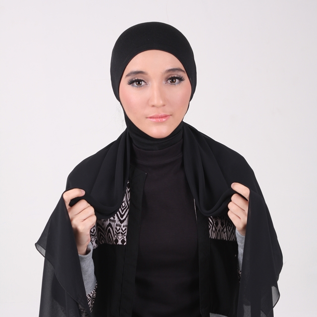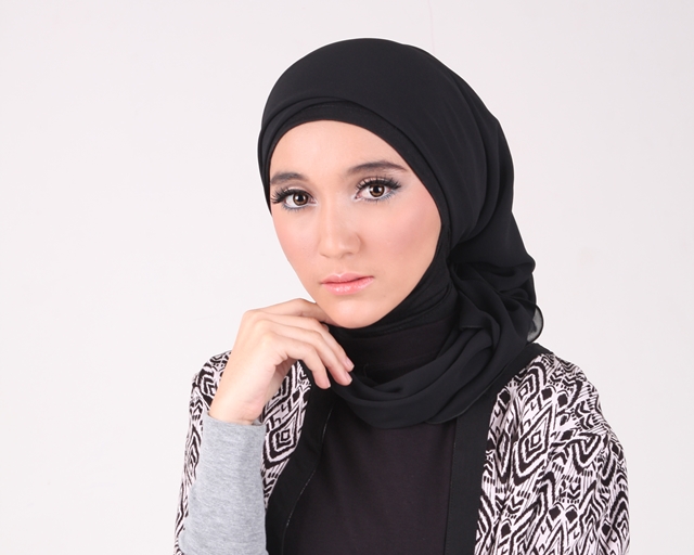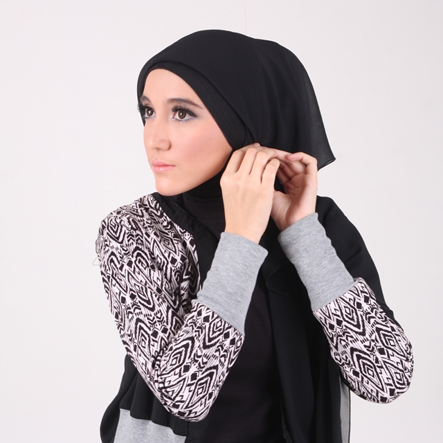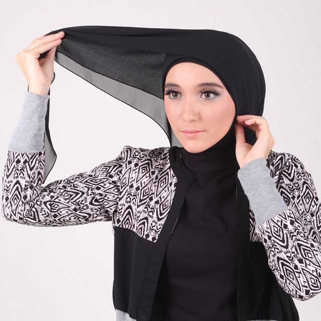 1. Gunakan inner ninja berwarna senada dengan hijab paris. Lipat hijab paris menjadi segitiga seperti biasa, lalu kalungkan pada leher.