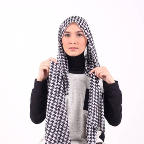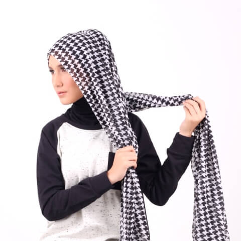 1. Gunakan pashmina dengan salah satu bagian yang lebih panjang dibanding satunya.