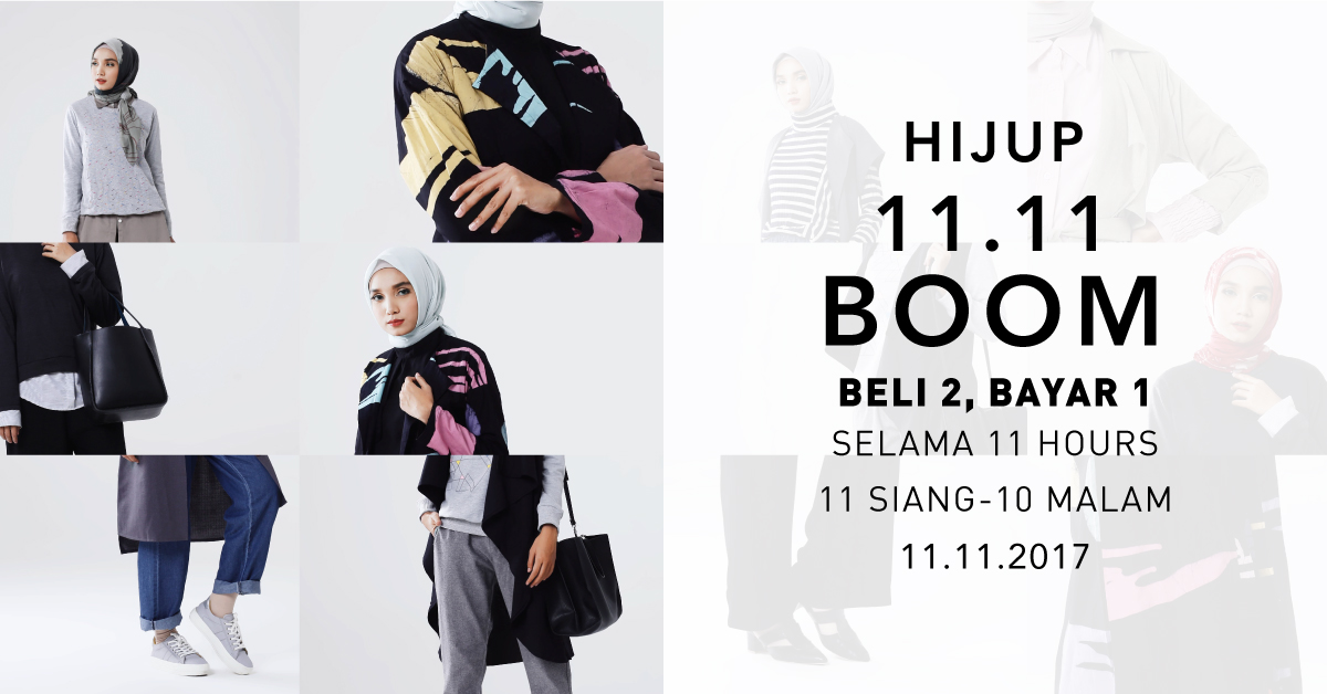 HIJUP 11.11 BOOM BUY 2 PAY 1 is here! Nikmati promo beli 2 bayar 1, untuk semua produk (tidak termasuk produk sale) tanpa minimum jumlah pembelian. Hanya hari ini mulai jam 11.11 sampai dengan 22.00. Jangan sampai kelewatan ya, dear!