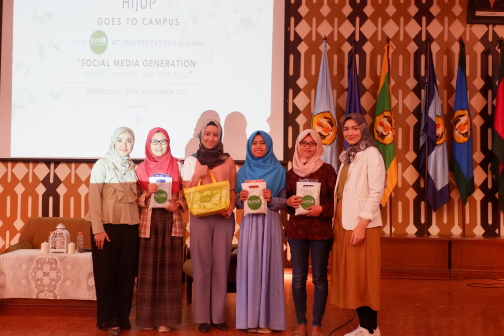 HIJUP Goes to Campus with Sunsilk goes to Universitas Padjadjaran! Pada 29 November 2017, HIJUP dan Sunsilk berkesempatan untuk mengunjungi teman-teman mahasiswi di Bale Santika, Universitas Padjadjaran, Jatinangor. Bersama Hanna Faridl, Chief Community Officer of HIJUP dan Bella Attamimi yang merupakan social media influencer berbicara mengenai tema "Social Media Generation: Young, Creative, and Inspiring". HIJUP Goes to Campus with Sunsilk mengajak dan mengedukasi peserta untuk dapat memanfaatkan media sosialnya dengan baik sebagai medium yang dapat menginspirasi berbagai karya atau usahanya.