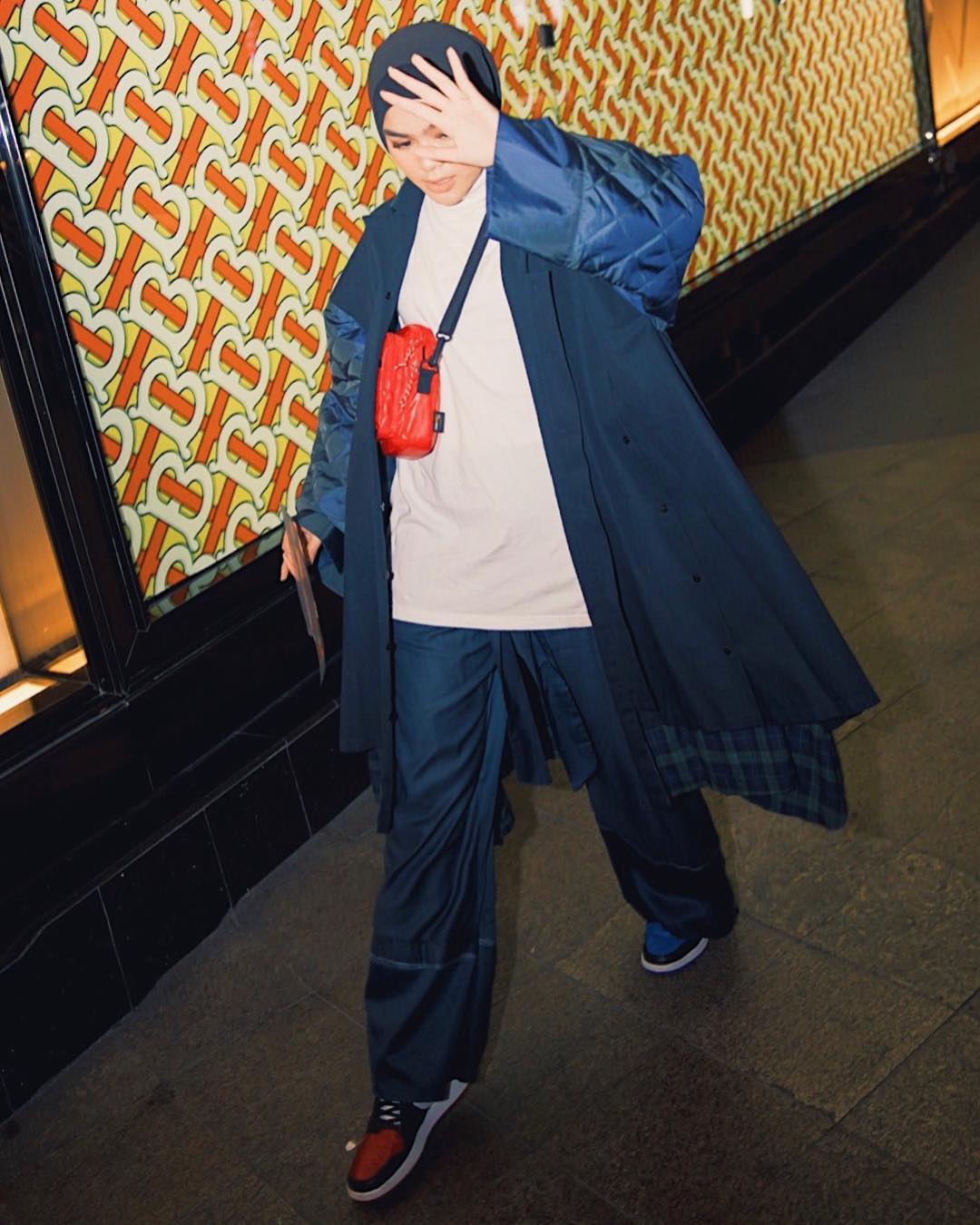 Memakai outfit yang sama dari atasan hingga bawahan tengah tren dunia fashion. Pasalnya, memakai dan atasan dan bawahan yang sama akan memberikan penampilan super chic. Seperti Sivia Azizah berhasil tampil super chic dengan atasan bawahan berwarna navy. Sivia Azizah memilih outer dengan potongan asimetris yang unik dengan tambahan tartan pattern di bagian bawah outer dan detail stitching berbahan nilon pada bagian lengan yang menarik atensi. Sivia memadukannya dengan turtle neck berwarna putih sebagai inner. Sivia memilih tas berwarna merah untuk menjadi spotlight.