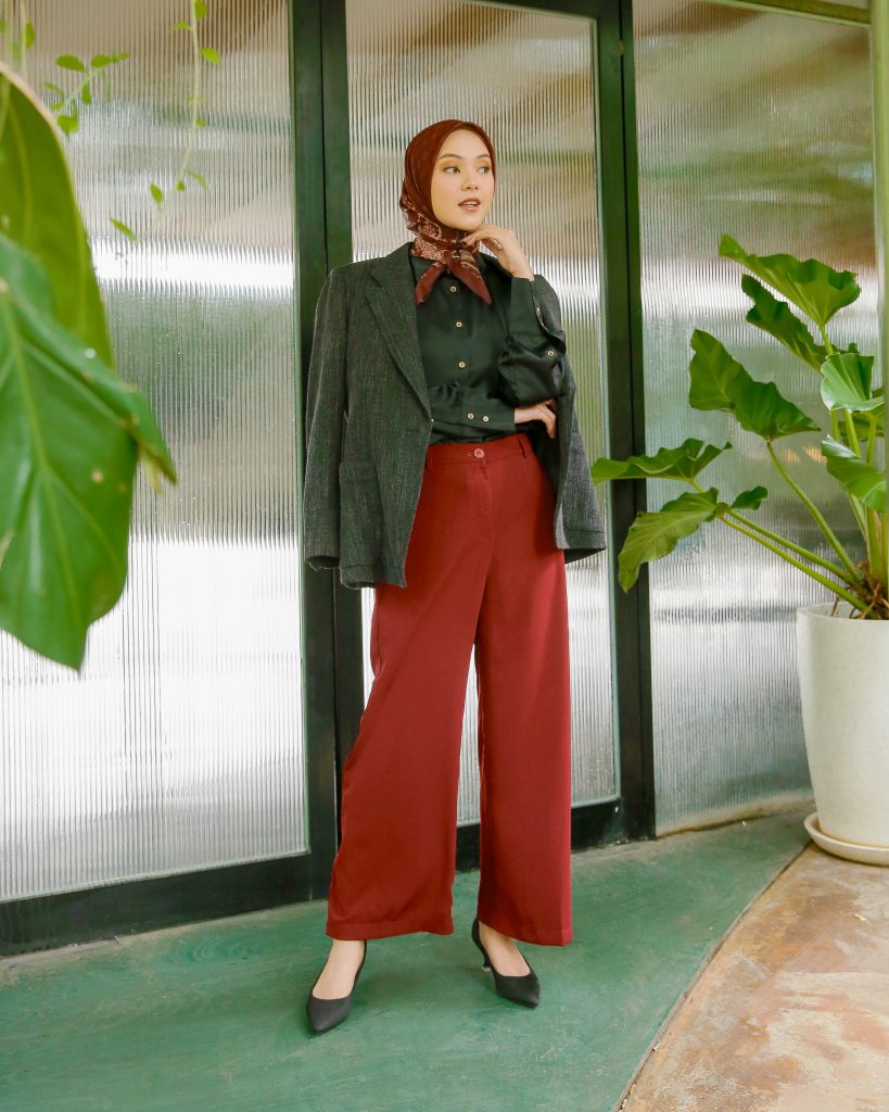 Anyway, karena outfit ini akan kamu pakai untuk ke kantor ataupun meeting dengan client, ada baiknya untuk keep this outfit more formal dengan menambahkan sentuhan blazer yang berwarna abu-abu tua. Dear.