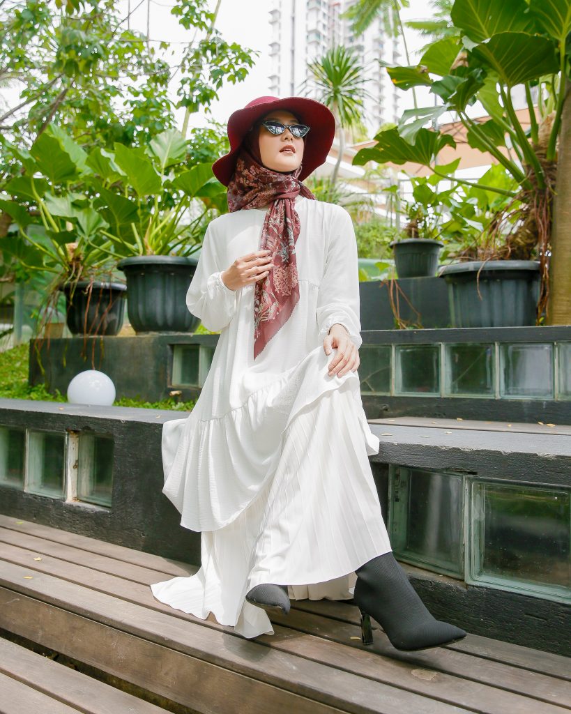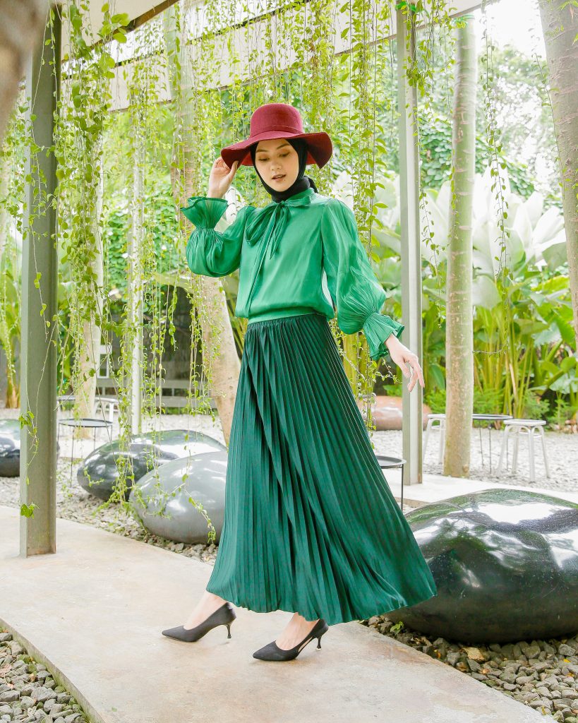 Tidak lupa juga, Minju menambahkan sentuhan warna hitam yang bisa kamu lihat dari pemilihan warna hijab dan juga sepatu heels-nya, Dear. Percaya deh, look ini gak akan membuat penampilanmu terlihat too much, lho. Sebaliknya, kamu akan terlihat fresh dan vibrant untuk dipakai pada saat hangout bersama pasanganmu di hari libur nanti. Gimana, tertarik untuk coba?
