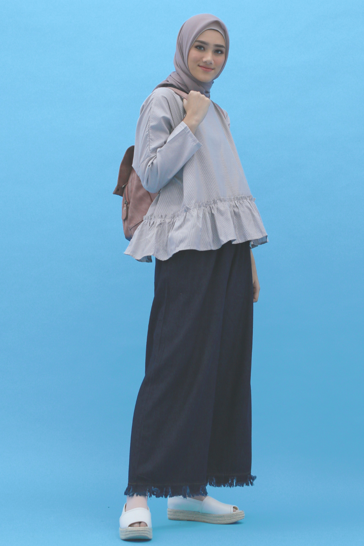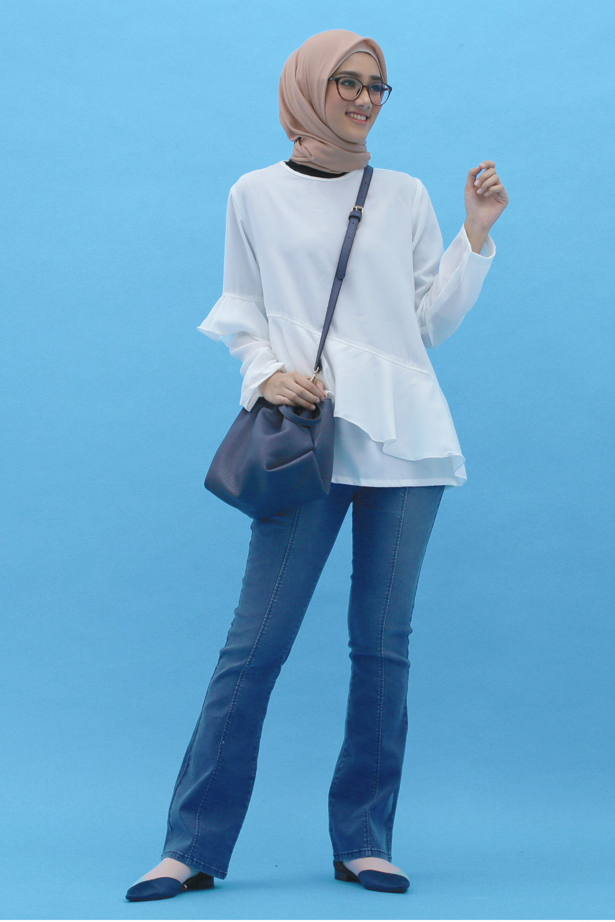 Untukmu pecinta gaya manis, kamu cukup mengandalkan koleksi blus dengan aksen ruffle. Untuk padanan bawahan yang serasi, kamu bisa mencoba memasangkannya dengan celana kulot denim dengan aksen fringe. Simply chic!*