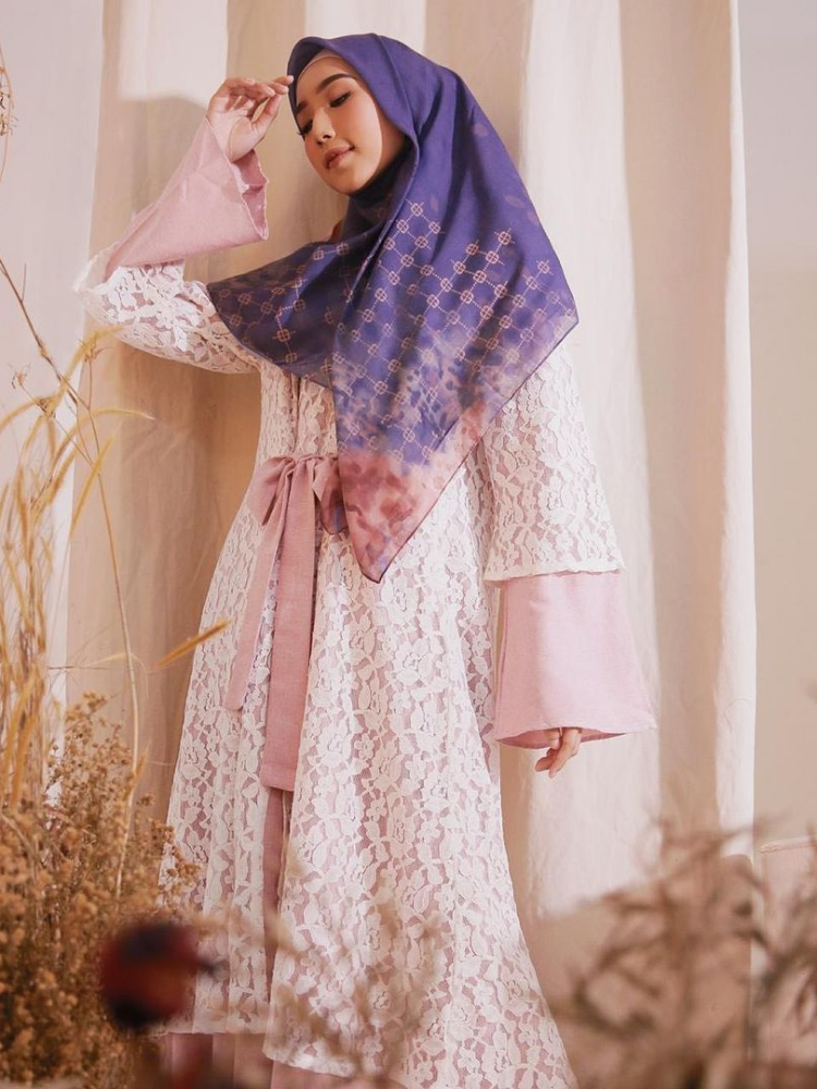 Kamu yang suka pakai hijab segi empat motif, saat ini sudaha banyak pilihan jilbab motif degan ukuran yang besar, pilih yang ukurannya minimal 120 x 120 cm ya. Hijab ini juga cocok untuk padanan gaya formal jika dipasangkan dengan laces dress cantik.