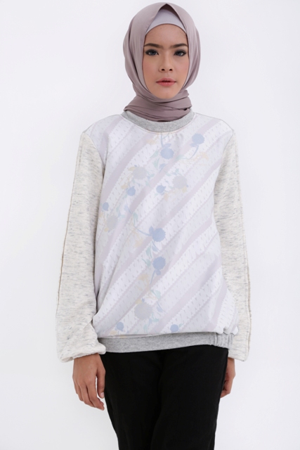 Sweater dengan motif bunga dan warna abu ini akan cocok dipadukan dengan rok polos dan sepatu boots.