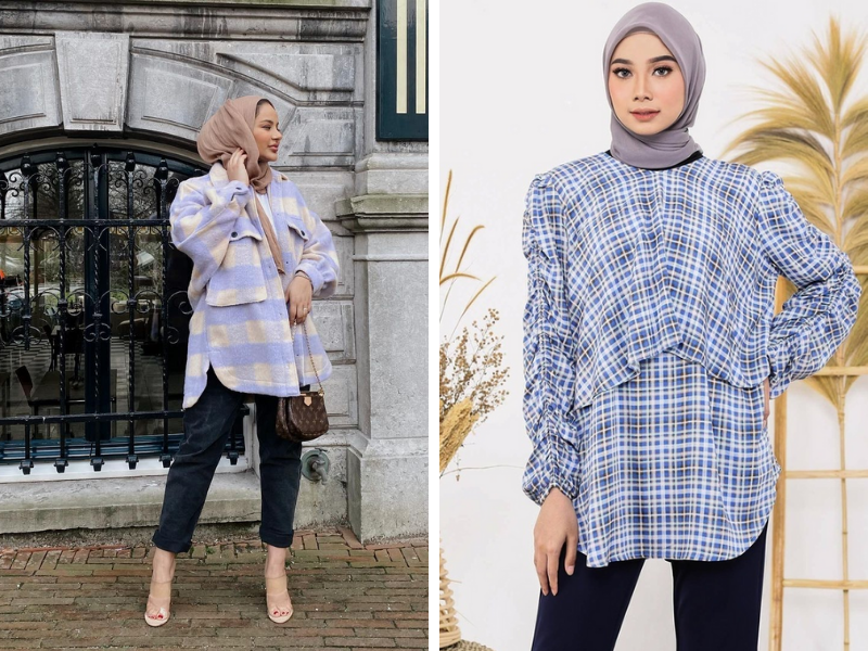 Blus selalu jadi pilihan favorit untuk hangout outfit. Selain mudah dipadupadankan, blus juga biasanya memiliki bahan yang nyaman. Seperti yang digunakan Ruba pada foto ini. Blus dengan warna soft dan motif tartan ini cocok dipasangkan dengan celana dan hijab berwarna netral. Agar tidak monoton, warna celana dan hijabnya bisa dibedakan seperti cokelat dan hitam yang bisa digunakan berbarengan.