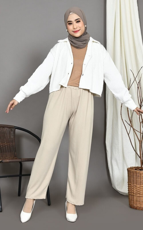 Tampil casual saat hangout bisa dengan jaket model crop yang dipadu celana kulot. Kamu bisa coba pakai jaket tanpa dikancingkan, sehingga kesan trendy makin terasa. Lalu untuk hijab, kamu bisa pilih model pashmina agar OOTD kamu tampak kekinian.