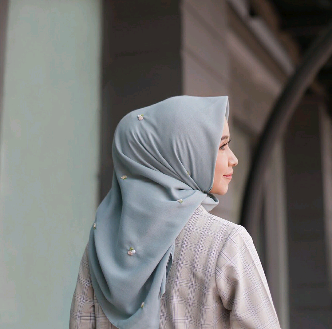 Kurang percaya diri dengan jilbab bermotif karena takut pipi tembem mu terlihat lebih lebar? Jangan khawatir! Kamu bisa memilih jilbab polos dengan detail bordir atau mutiara. Jilbab dengan detail ini bisa membuat tampilan yang simple dan chic.