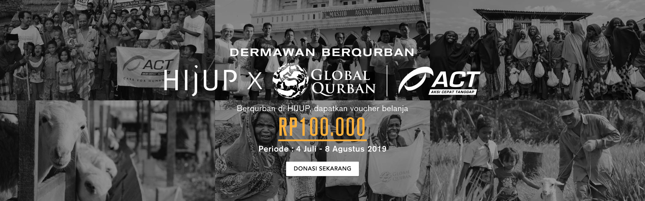 Mari berqurban bersama HIJUP melalui Aksi Cepat Tanggap dan Global Qurban. Hasil potongan qurban akan disalurkan untuk 223 kabupaten di Indonesia dan 50 negara di dunia, termasuk Palestina, Suriah, Somalia, dan etnis Rohingya di Myanmar.