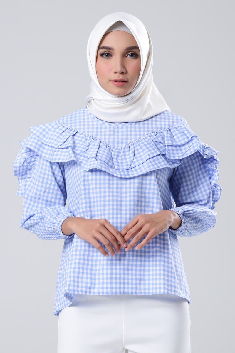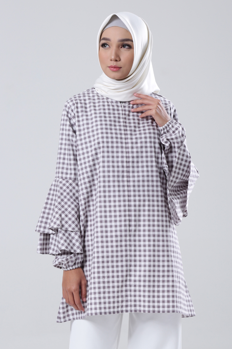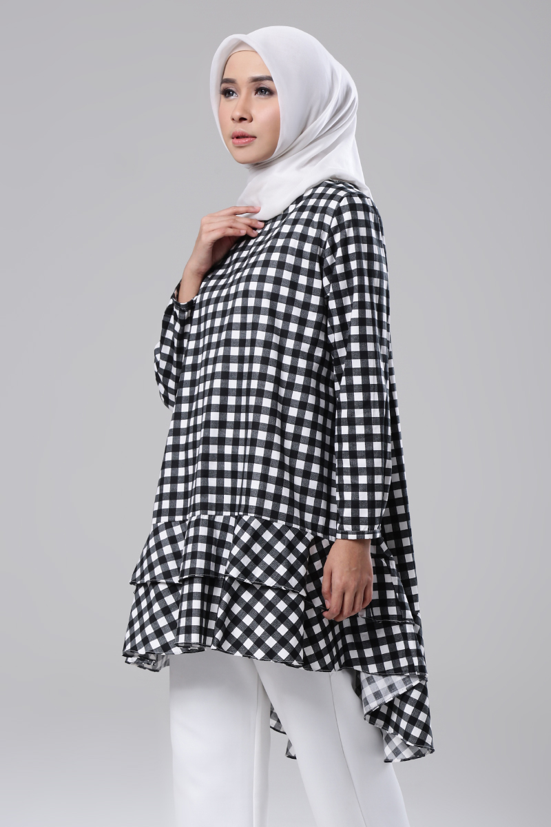Double ruffle tunic dengan motif gingham berwarna hitam putih cocok bila dipadupadankan dengan celana putih atau celana berwarna netral lain. Lengkapi dengan high heels untuk menambah kesan girly pada tampilanmu.