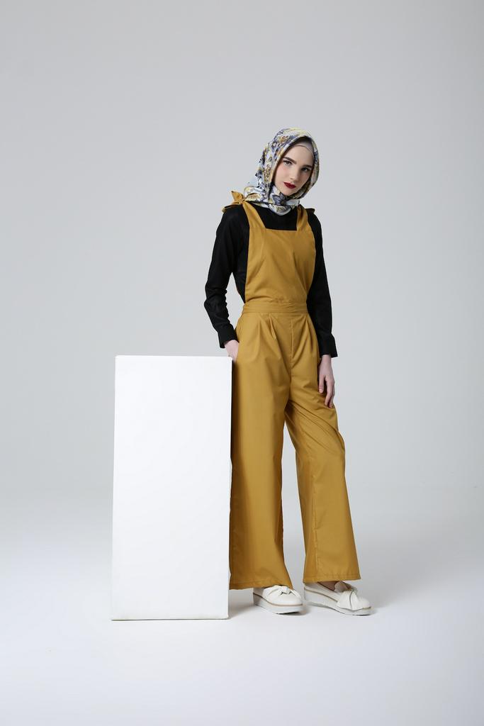 mustard. Agar tampak lebih selaras, padukan juga tampilanmu dengan jilbab segi empat bermotif