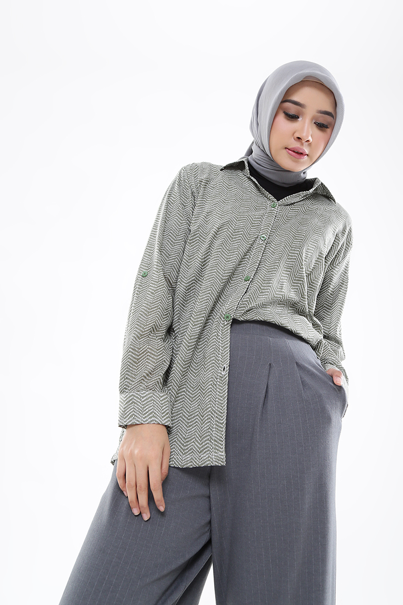 Tidak hanya kemeja oversize polos, kemeja bermotif juga bisa menjadi pilihanmu.