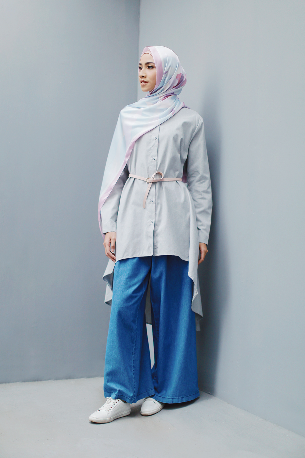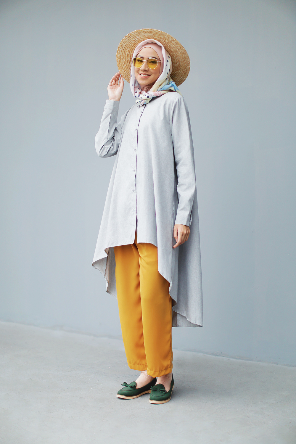 Bagi kamu yang senang travelling, jangan ragu untuk memilih tunik sebagai teman travelling-mu. Padukan tunik bernuansa abu-abu dengan berbagai fashion item yang memiliki nuansa warna bright. Padukanlah dengan celana berpotongan slim fit dengan warna mustard, loafer shoes hijau, serta jilbab bermotif dengan warna senada. Tambahkan topi kesayanganmu untuk menambah kesan stylish.