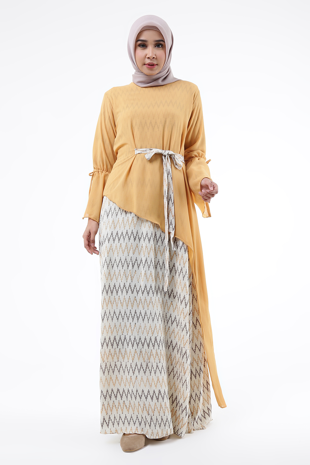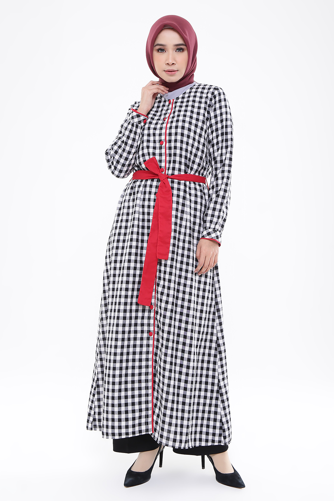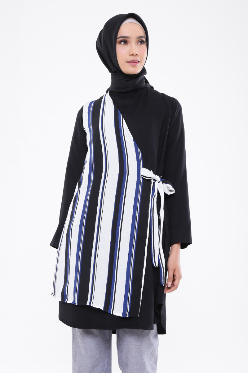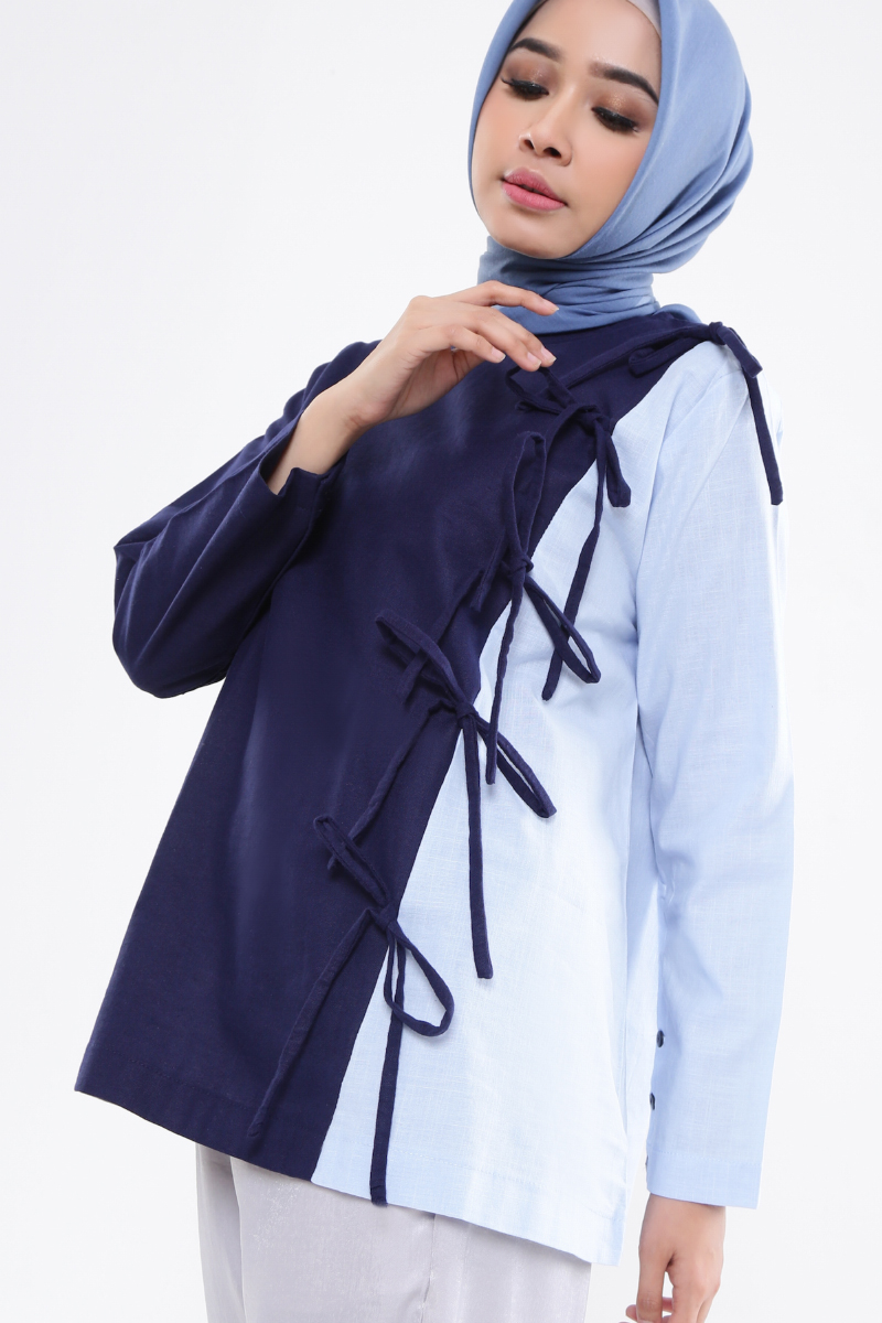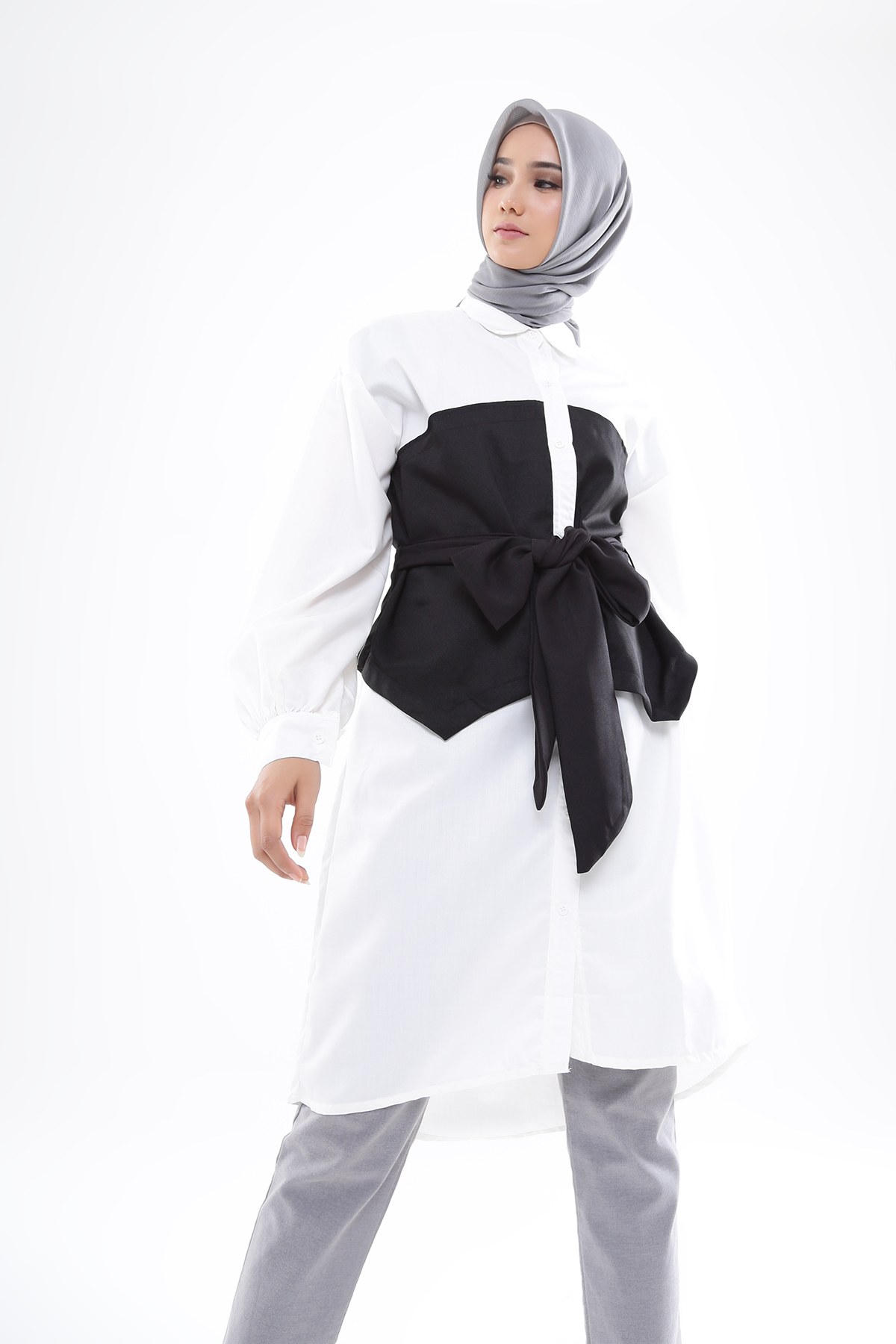 Tunik bisa tampil lebih feminin dan stand out dengan detail pita besar di bagain pinggang. Cukup padukan dengan jilbab berwarna senada agar tunikmu menjadi statement dari tampilanmu.