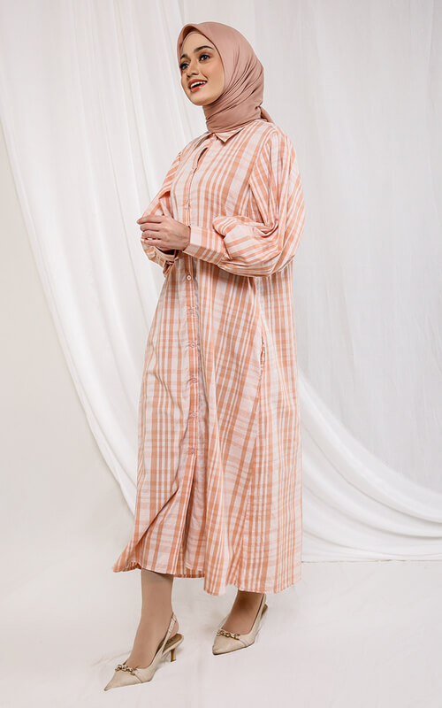 Perpaduan motif kotak dan polos bikin gamis ini makin fashionable dan bisa membuat kamu mencuri perhatian saat sedang di luar.