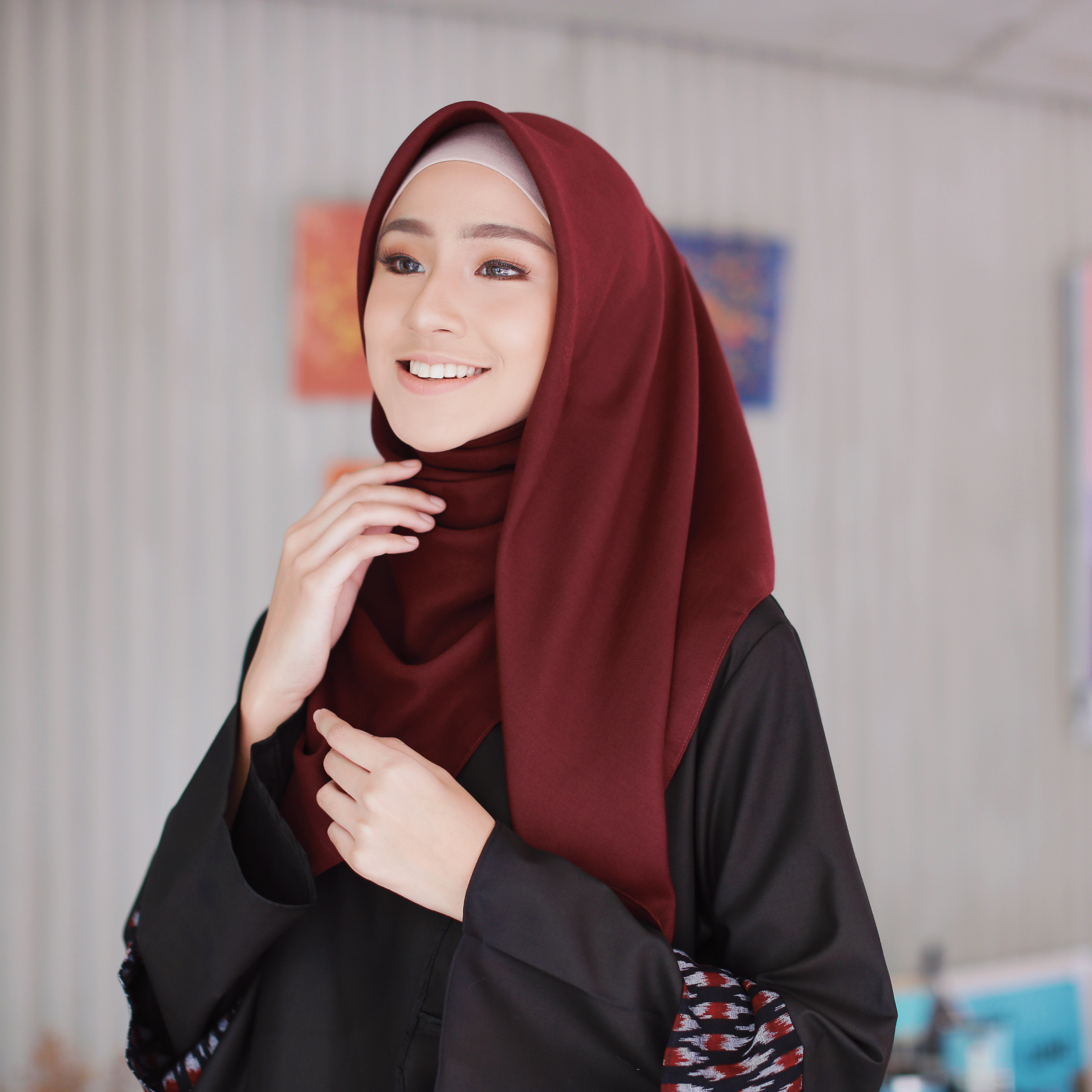 Kamu harus mencoba model jilbab segi empat terbaru yang kekinian ini. Caranya mudah, yaitu tarik ujung jilbab ke sebelah kiri, mengelilingi leher. Kamu bisa melihat tutorial lengkapnya dengan klik disini.